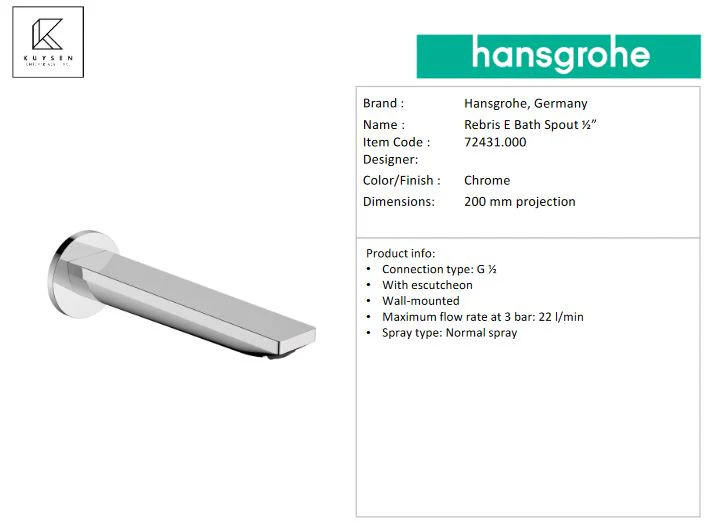 - DESCRIPTION: Rebris E Bath Spout ½”
