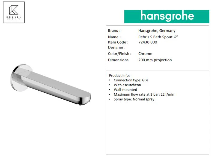 - DESCRIPTION: Rebris S Bath Spout ½”