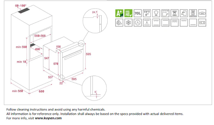 - PRODUCT DESCRIPTION: Multifunction SurroundTemp oven 71/70 L., HydroClean® PRO cleaning system, Touch Control panel with TFT 4", 12 cooking functions, SlowCook and Quick Heat, removable triple glazed door, soft close, personal cooking assistant (20 recipes)